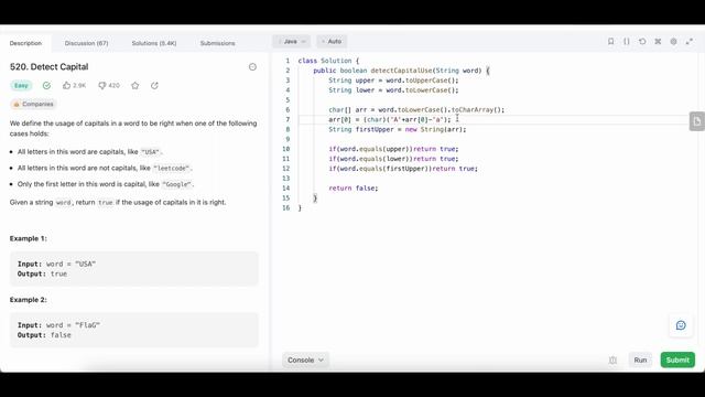 Leetcode | Easy | 520 | Word Pattern | Java Solution | Daily