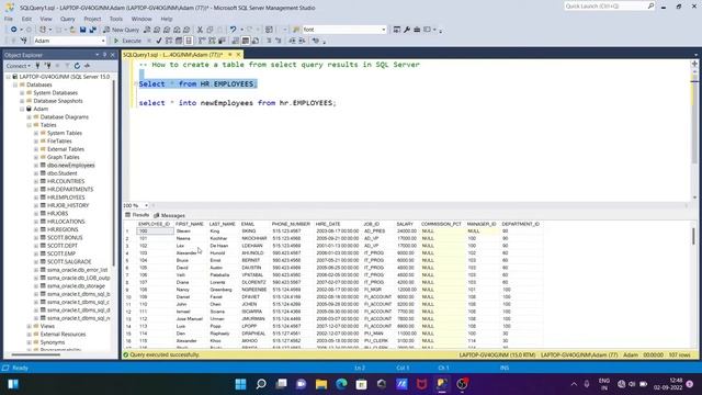 create table from another table in sql server with data