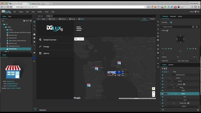 The DGLux5 Google Map component lets you quickly and easily tie a map to your complex data sets, so that in just minutes, you can visualize your geographic data the way it should be seen.