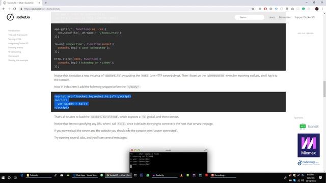 Hi, in this video you learn to create a basic socket.io server using Nodejs and express framework. In this basic server, you will connect a user to a socket.io server and disconnect user with server and log these events on console.