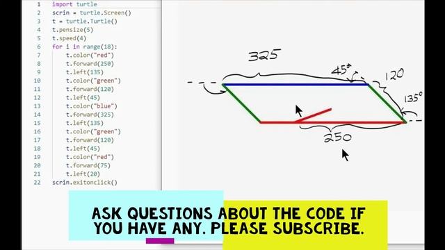 Please feel free to copy and paste the Python Turtle code that is given below. Don't hesitate to ask questions about the code if you have any. Please subscribe! Enjoy!