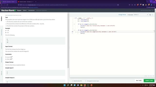 In this video, we solve the Python challenge Arithmetic Operators on HackerRank.