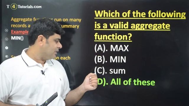 Aggregate Function MCQs, Scalar function MCQs, DBMS MCQs