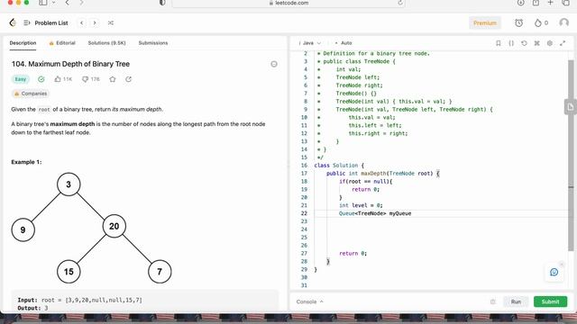 Maximum Depth of Binary Tree - 2 Solutions - Leetcode 104 - Java смотреть онлайн