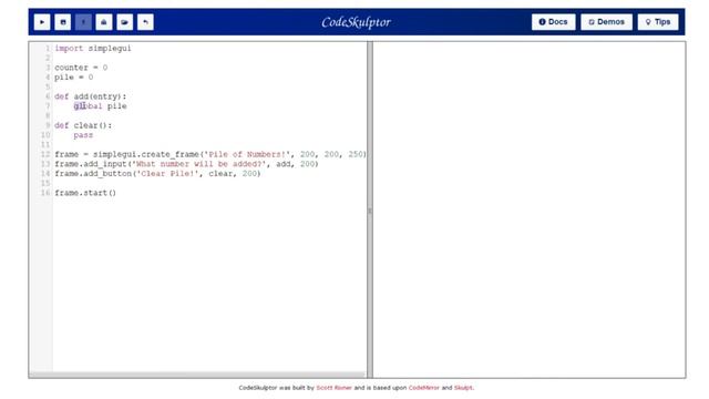 Follow along as I make a simple program that adds numbers to a pile and clears the pile on a button press.