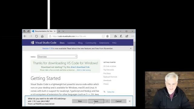 See how to install Node and Visual Studio Code, and learn why you need each. Watch as Bob writes a first tiny line of code to make sure that the installation is ready.