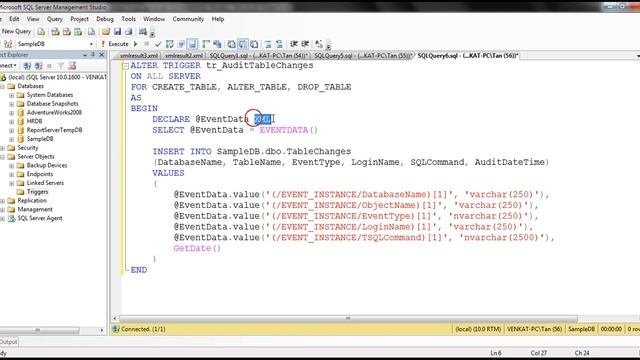In this video we will discuss, how to audit table changes in SQL Server using a DDL trigger.