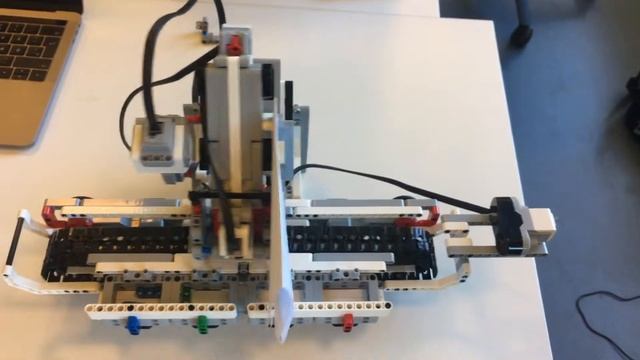 The project was build by a color sensor for color detection, a distance sensor for tracking the position of the feeder, dual synced motors for movement, and a switch for counting the number of LEGO bricks sorted.