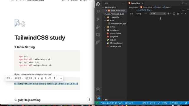 TailwindCSS를 파이썬 Flask에서 활용할 수 있도록 세팅하는 방법을 배웁니다.