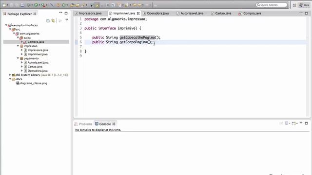 Também é mostrado como tiramos proveito do polimorfismo. No exemplo, brincamos com a ideia de mais de uma impressora e operadora de cartão de crédito para ilustrar esse conceito.