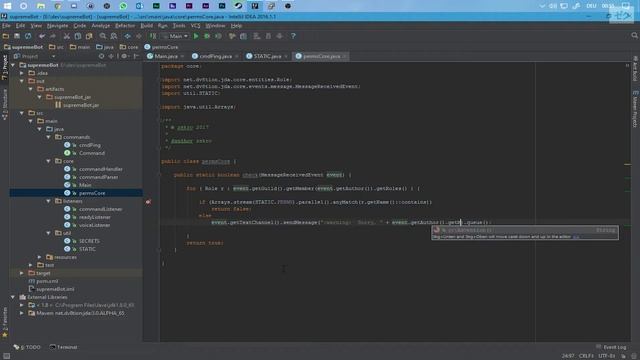 ACHTUNG: Der im Video gezeigte Code baut auf eine outdatete Version der JDA und ist nicht optimal konzipiert, da ich zu der Zeit noch nicht so viel Erfahrung in Java hatte, wie es vielleicht besser gewesen wäre. Seht das Video einfach als eine kleine Motivation um es besser zu machen ;)