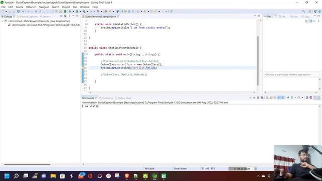 Static Block - 13:50 Static Method - 20:44