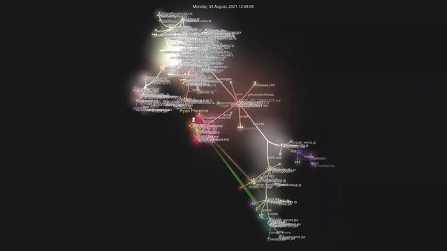 A visualization of the https://github.com/remix-run repo over time using https://gource.io/ with parameters `gource -s 0.05 -a 0.05`.