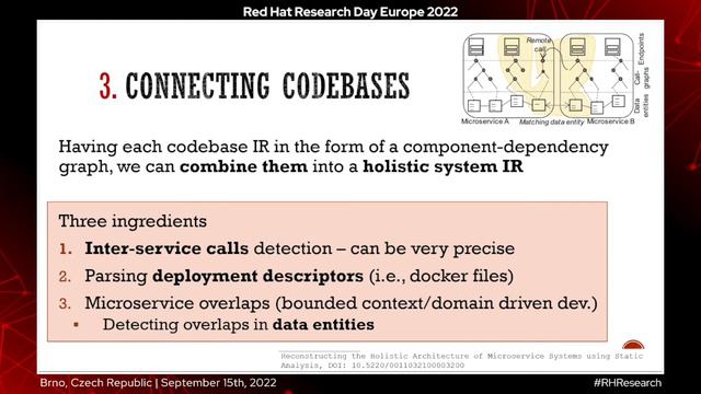 Static analysis traditionally provides early feedback to developers on code quality and potential issues in their program. However, in the context of Microservices, it must cope with decentralization and heterogeneity across codebases. Conventional low-level static analysis tools fail to address emerging needs for multi-codebase operability, which is common for microservices. To bridge such gaps, static analysis approaches could adapt and recognize the microservice development practice and use it to determine the system’s intermediate representation (IR). This talk illustrates our static analysis prototypes using a component-based graph as the system IR for technical reasoning about the overall system. Our system IR has been adopted for various tasks. For instance, it is possible to detect microservice bad smells to improve the evolution of these systems, check consistency across microservices, or improve the detection of semantic clones. It is also possible to perform conformance checking toward the originally intended architecture design using a visualization of the reconstructed system architecture. Various practical examples will be given throughout this talk.