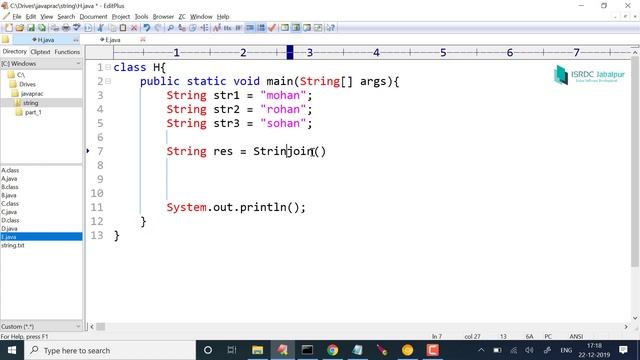 In this lecture we discussed join method in String library class, which helps to join any number of string tokens with a connecting string(delimiter).