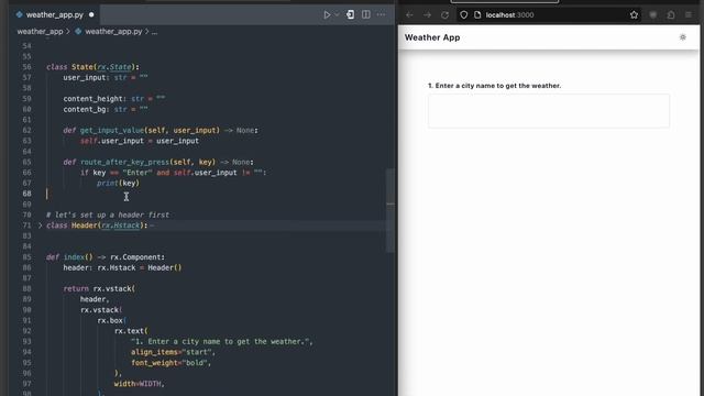 Creating a weather application is an excellent starter project for those looking to get better at programming. In this tutorial we'll use Python programming language and the Reflex web framework to build a fully functioning weather app.We'll cover several topics in this video, learn how to style our application, and use requests to get API data from OpenWeather.