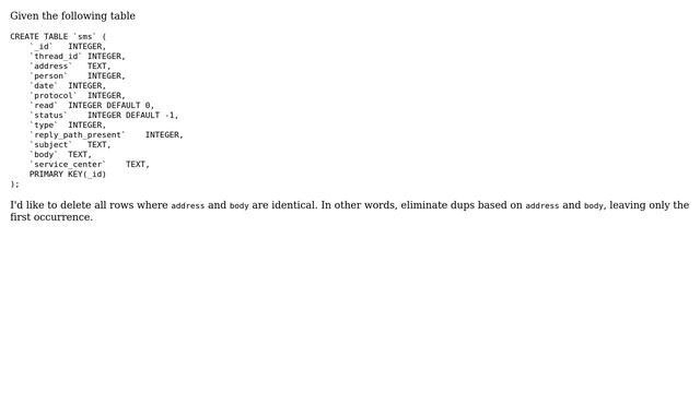 Databases: SQLite3: Remove duplicates