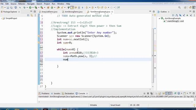 Video Topic : Java program to check armstrong number