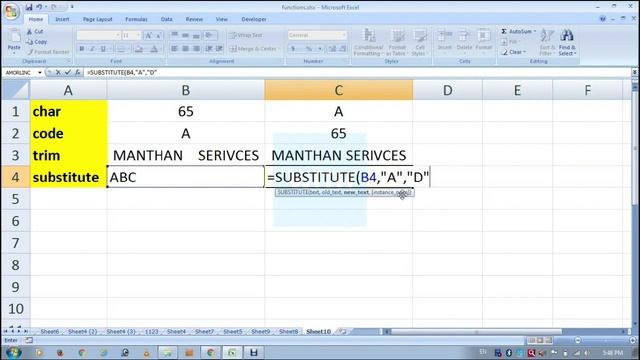 Char, Code, Trim & Substitute function in excel смотреть онлайн