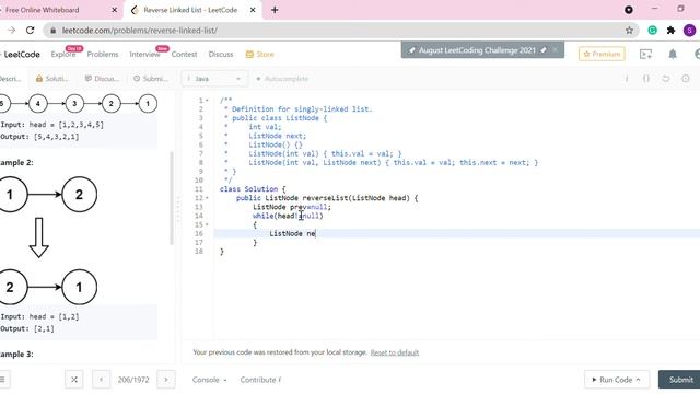 LeetCode Reverse Linked List Java смотреть онлайн