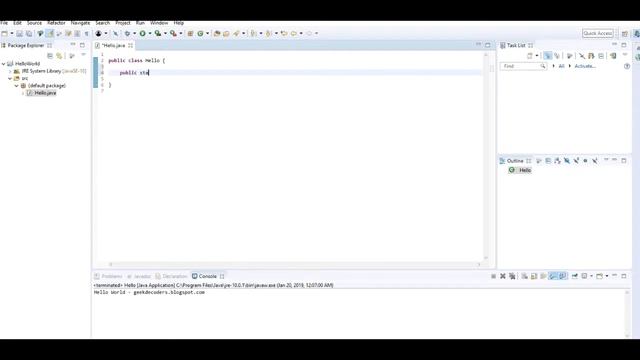 For more insight: https://geekdecoders.blogspot.com/2019/01/how-to-write-java-program-in-eclipse.html