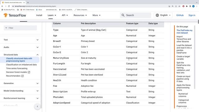 Classify structured data using Keras Preprocessing Layer