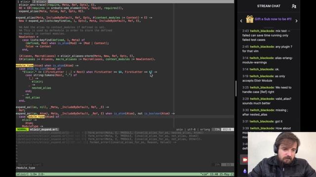 Here I work on a new issue from Elixir core, to add an error at compile time when someone tries to `alias :lists` without the `as: Something` option. Here's the link to it: [https://github.com/elixir-lang/elixir/pull/11008](https://github.com/elixir-lang/elixir/pull/11008) -- Watch live at https://www.twitch.tv/kelvinstin
